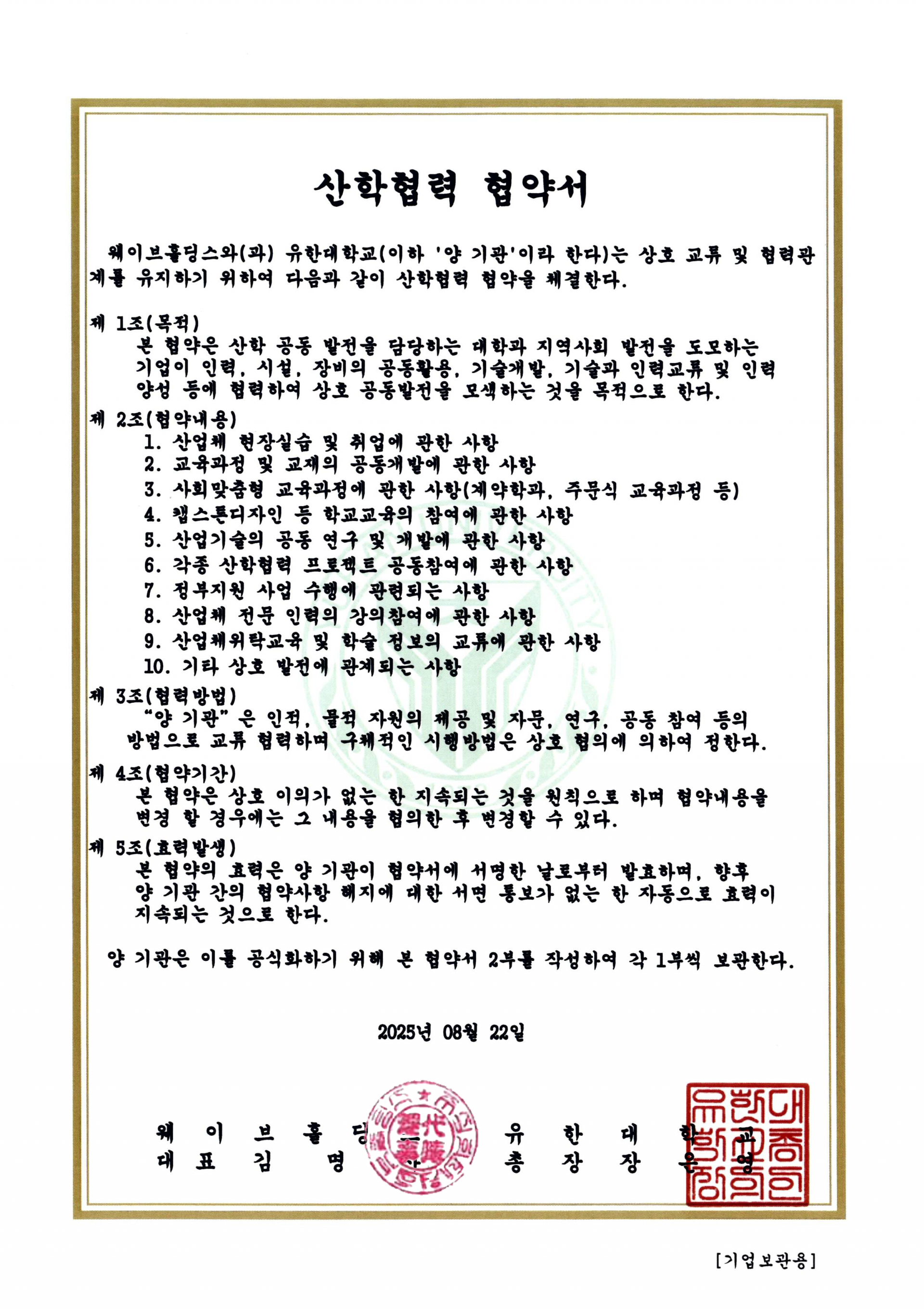 MOU 체결식은 유한대학교에서 진행되었으며, 이바우펫 애견미용학원과 유한대학교 관계자가 참석해협약서에 서명했다. 협약식에서는 양 기관이 상호 협력을 통해 교육, 연구, 현장 실습 등 여러 분야에서의발전을 함께 도모하고, 애견미용 산업의 발전을 위한 기반을 마련하겠다는 다짐이 이어졌다.